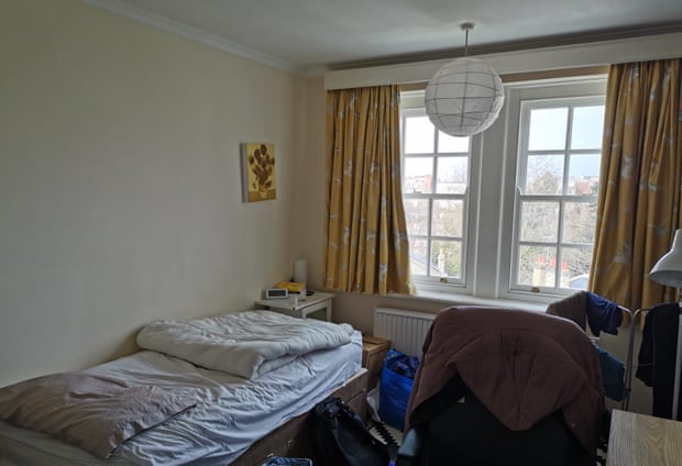 Ryan’s single bedroom in central London where he remains in self-isolation. Photograph: Handout